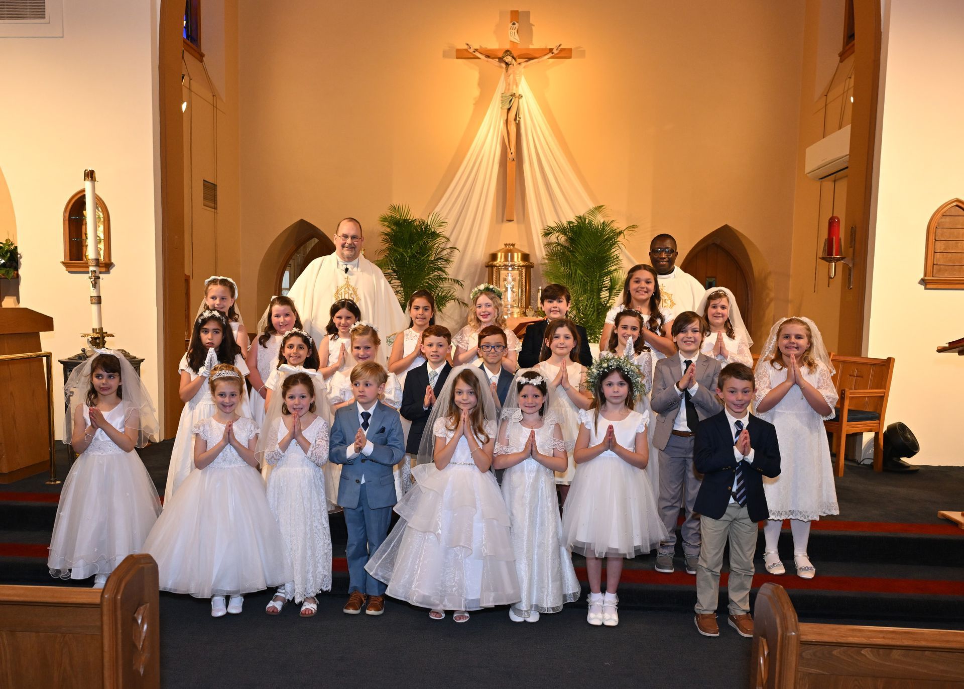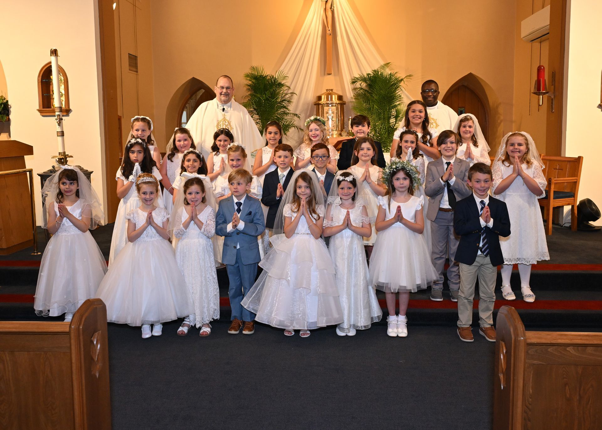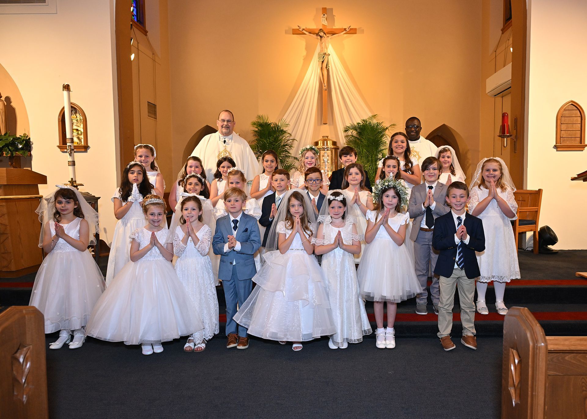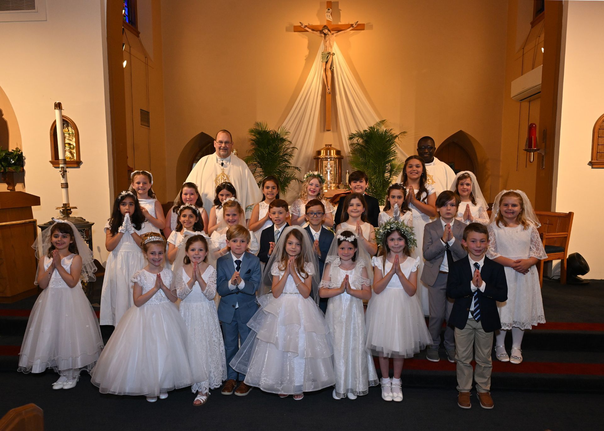On Saturday, May 03, students from our grade two religious education class received their First Eucharist. Fr. Cocco, Fr. Emmanuel and the Staff at St. Edmond congratulate all the students who received this sacrament! Note: Click on image to view in a larger format.