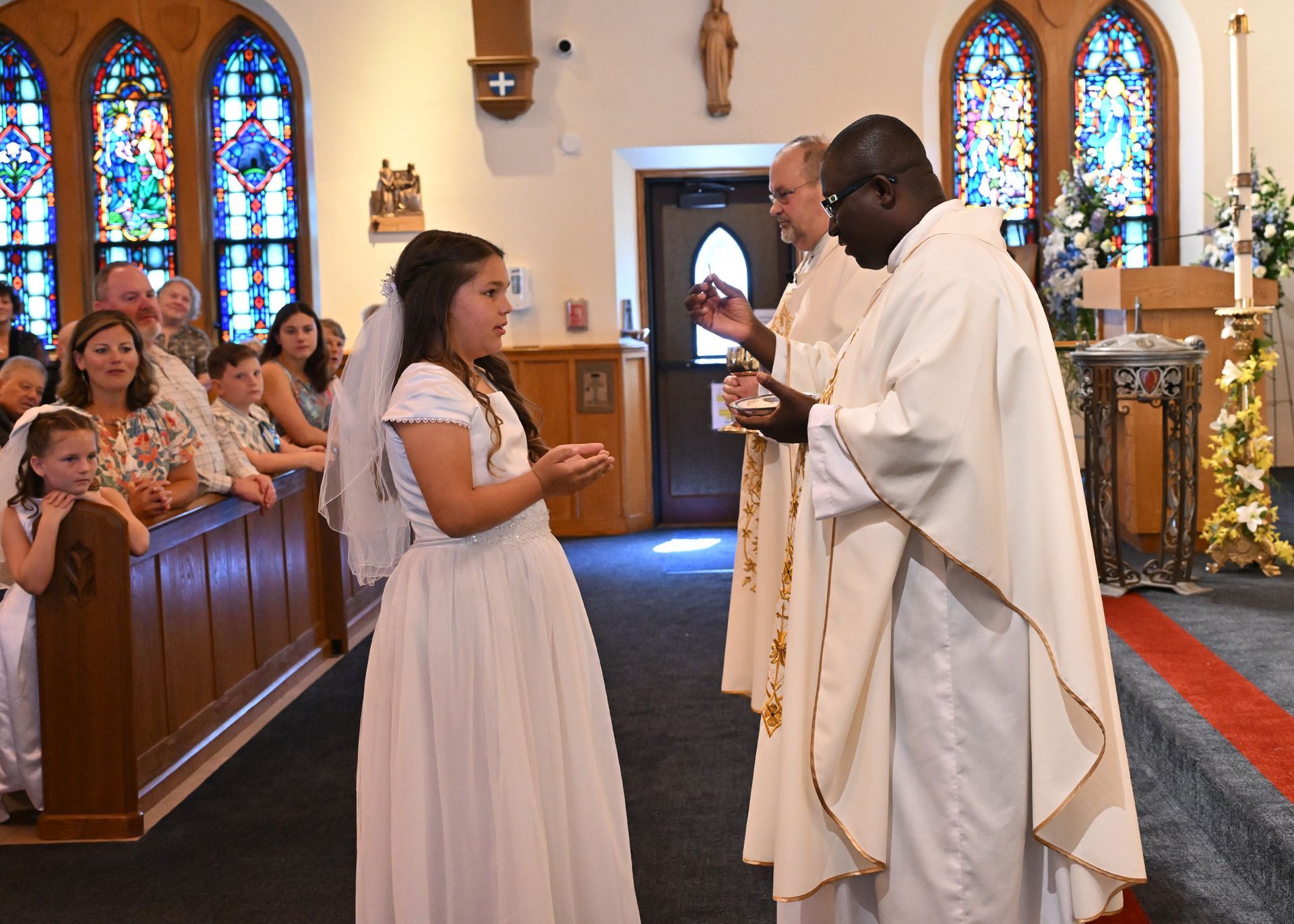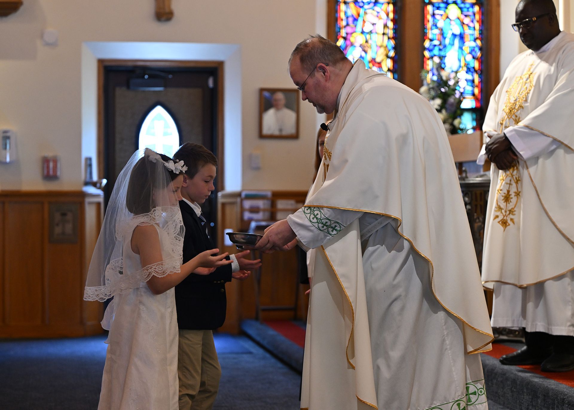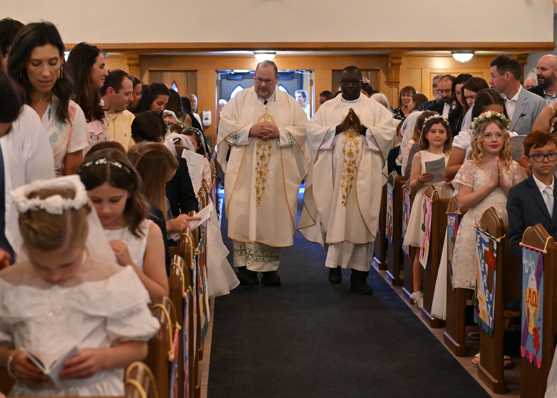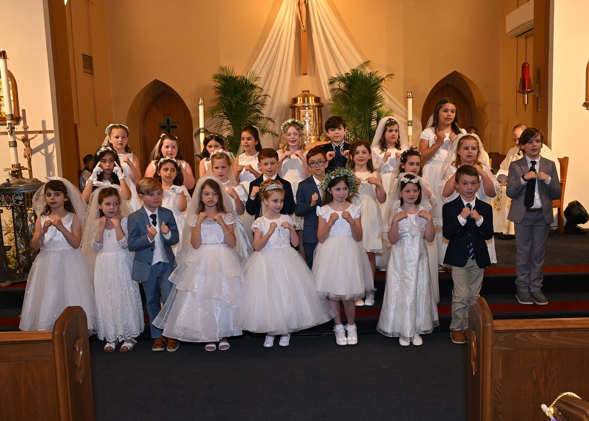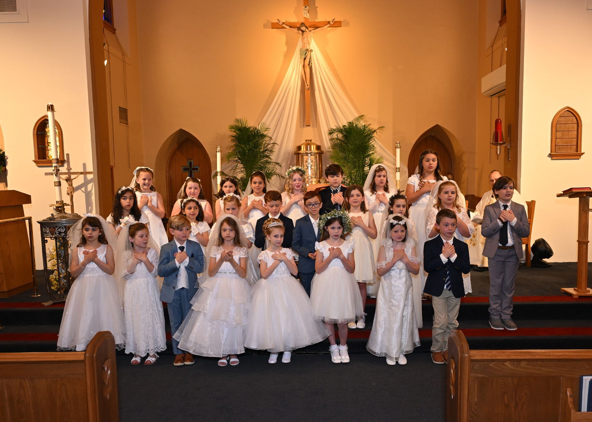 On Saturday, May 03, students from our grade two religious education class received their First Eucharist. Fr. Cocco, Fr. Emmanuel and the Staff at St. Edmond congratulate all the students who received this sacrament! Note: Click on image to view in a larger format.