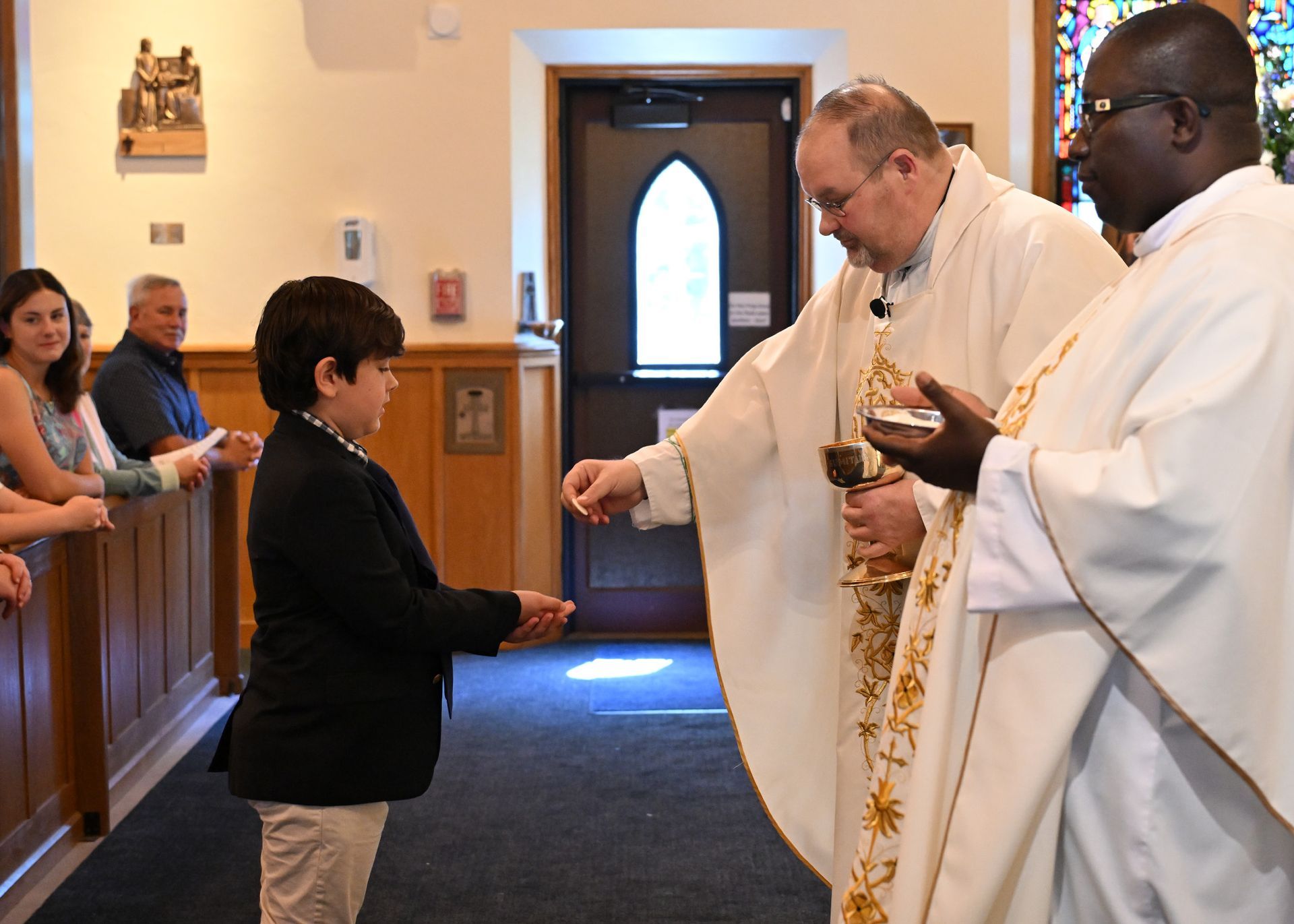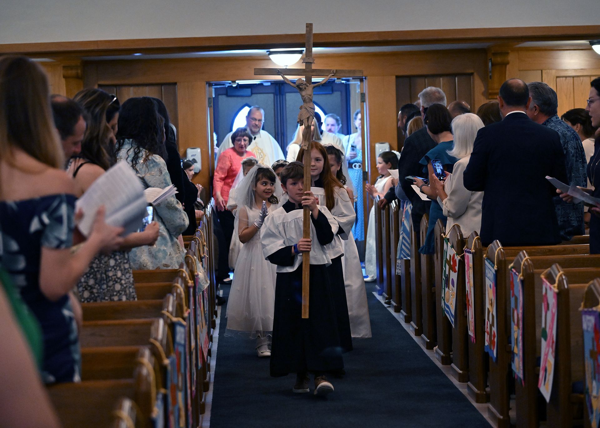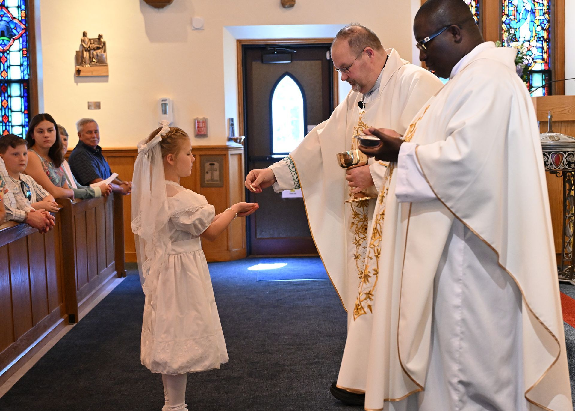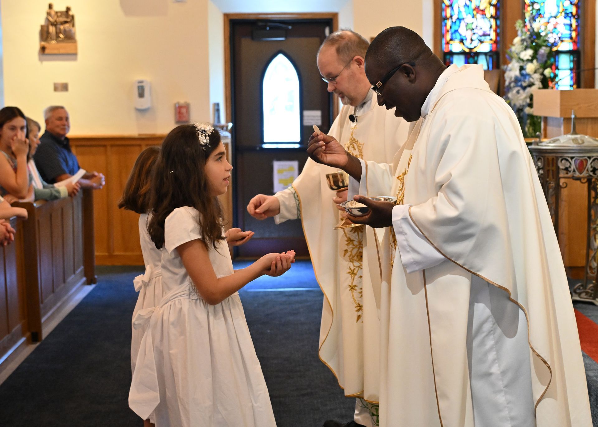 On Saturday, May 03, students from our grade two religious education class received their First Eucharist. Fr. Cocco, Fr. Emmanuel and the Staff at St. Edmond congratulate all the students who received this sacrament! Note: Click on image to view in a larger format.