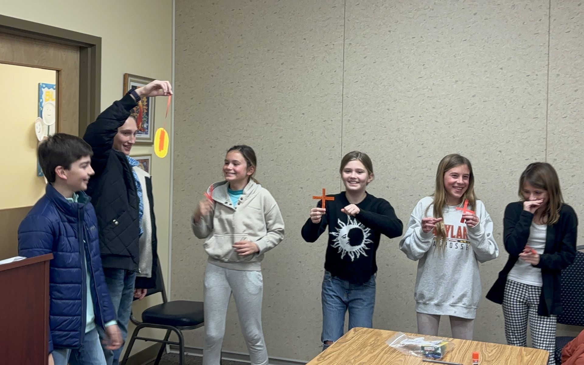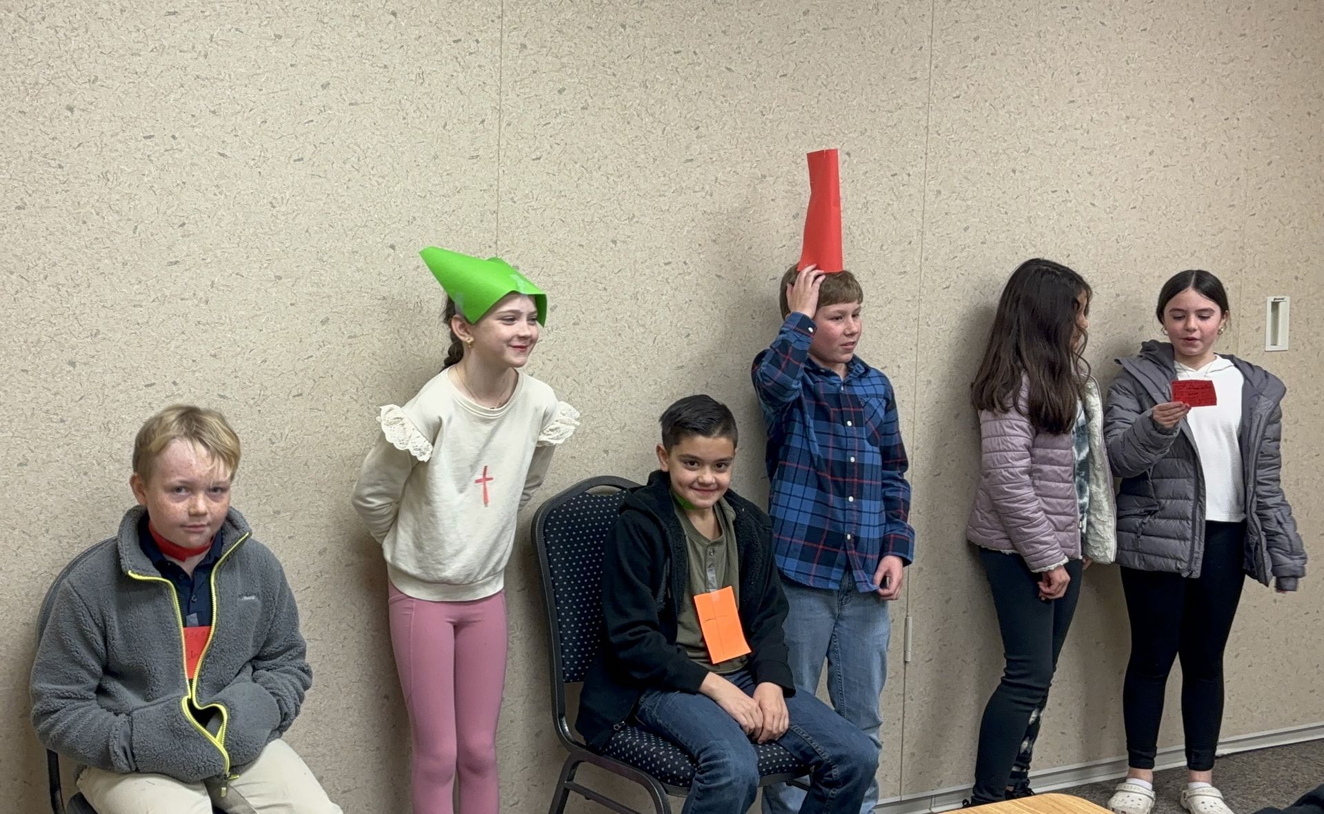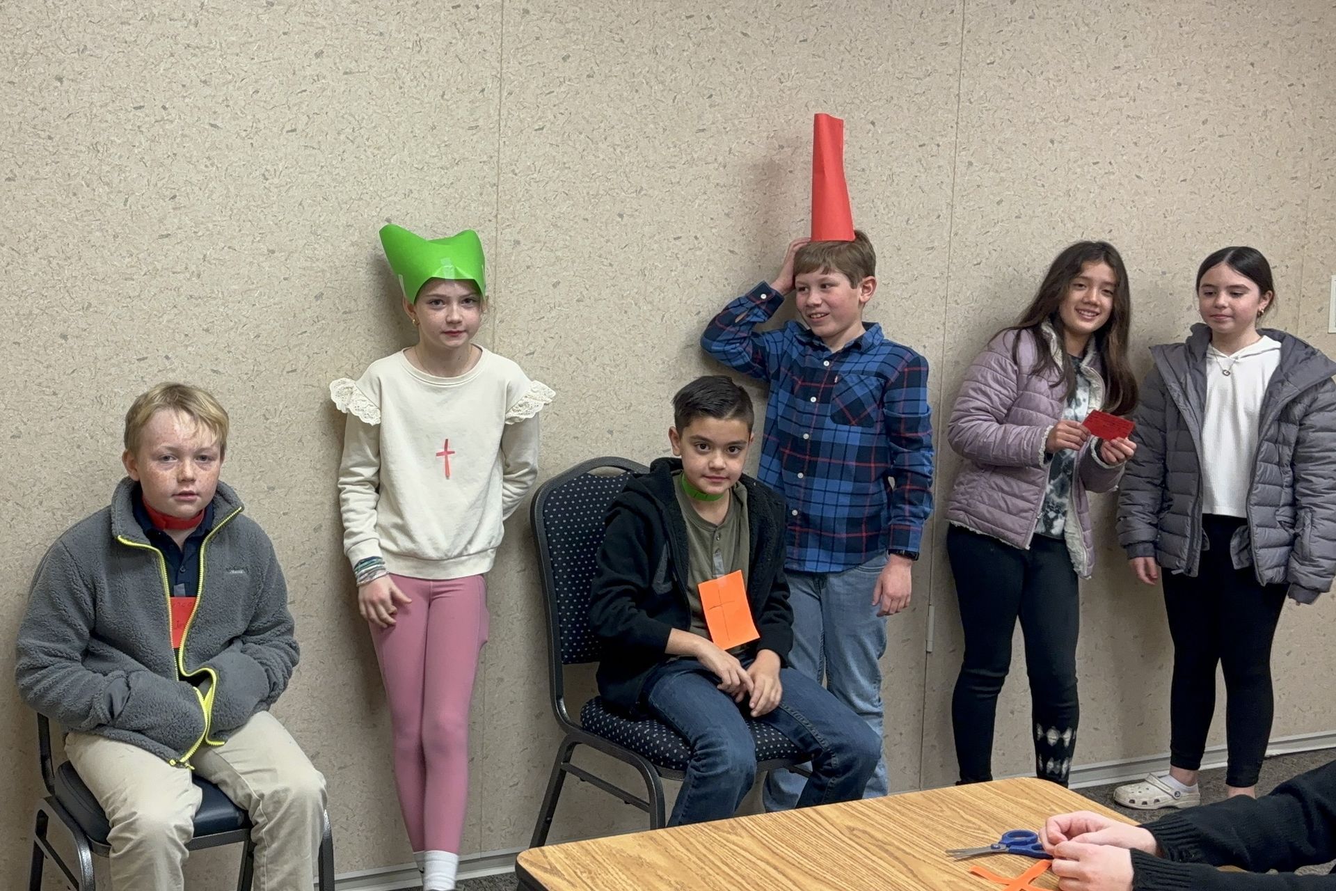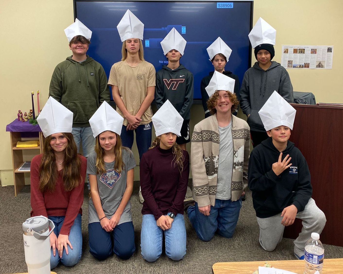 Grade 08 students made up Bishop Mitre Hats as part of a Church History lesson.